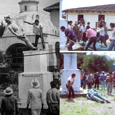toppling of a statue of Diego de Mazariegos, conquistador.